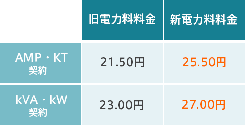 | 九州電力エリア | 21.50円 | 23.00円 | 25.50円 | 27.00円 |