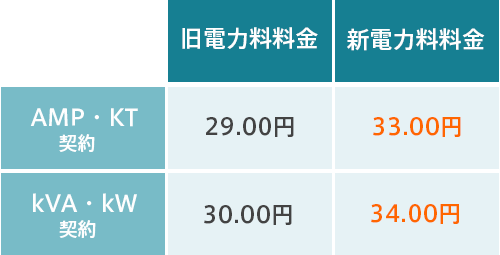 | 北海道電力エリア | 29.00円 | 30.00円 | 33.00円 | 34.00円 |