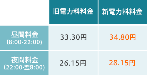 下記のとおり「よる得プラン」の電力量料金の料金改定を行います。